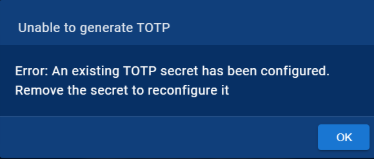 When setting up the TOTP again for the local administrator account, if you get the below: